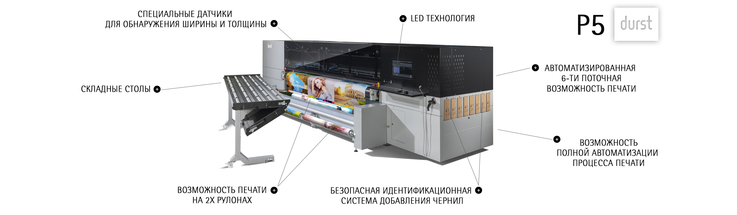 Предлагаем вашему вниманию обзор нового сублимационного принтера со встроенным фиксатором (iSUB) и возможностью одновременной печати на двух рулонах, для одноэтапного процесса прямой печати по ткани — P5 TEX iSUB.