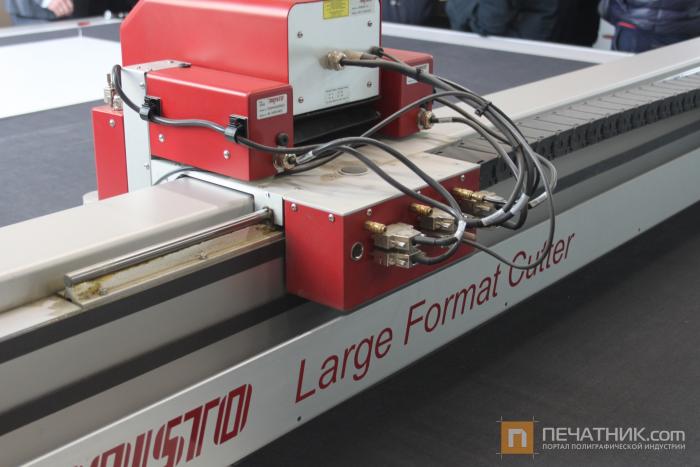 После выступлений все желающие смогли увидеть в работе режущий плоттер Aristomat LFC 2332, который установлен на производстве компании «Ультравита». На плоттере была продемонстрирована резка различных материалов толщиной от 2-х до 10-ти мм.