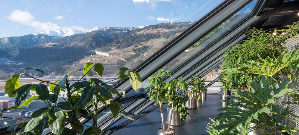 "Мы не уклоняемся от интернационального сравнения с другими исследовательскими учреждениями, такими как находящиеся в Кембридже или Пало-Альто", - говорит Ричард Пьок, президент административного совета Durst. “Это не только яркое олицетворение Durst, которое впечатляет смотрящего, но также неотъемлемые внутренние ценности, которые символизирует компания”. Корпус здания был возведен в соответствии со строгими требованиями для пассивных (энергосберегающих) домов и оборудован биоклиматической системой. Внутренний воздух проходит через т. н. "зимний сад", поднимается вверх на несколько этажей и затем охлаждается до 4 градусов по Цельсию посредством испарений с поверхности листьев. На каждом этаже находятся разные растения: например, на верхнем этаже доминируют суккуленты - кактус, молочай, а также другие с толстыми листьями. Система отопления и горячего водоснабжения управляется термальным насосом и была разработана с экологическими соображениями. Водосберегающие установки и комплексное управление электричеством завершают экологический концепт.