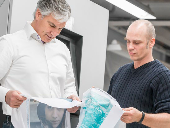 KL Druck живо отреагировала на изменяющиеся желания потребителей. Отделам консультации и обслуживания была дана установка предлагать сублимационную печать в качестве альтернативы. Согласно подсчетам Кюртена, 75% всей POS-рекламы так или иначе содержит УФ-чернила. Что касается текстильной печати - он явно считает сублимационную печать с чернилами-красителями на водной основе усовершенствованием. "Она более экологична и удобна, поскольку водные чернила-красители вообще не имеют запаха", - говорит Кюртен и добавляет: "Хотя сублимационная печать стоит дороже по сравнению с УФ вариантом, некоторые из наших клиентов приняли философию устойчивого производства и полностью удовлетворены качеством печати".