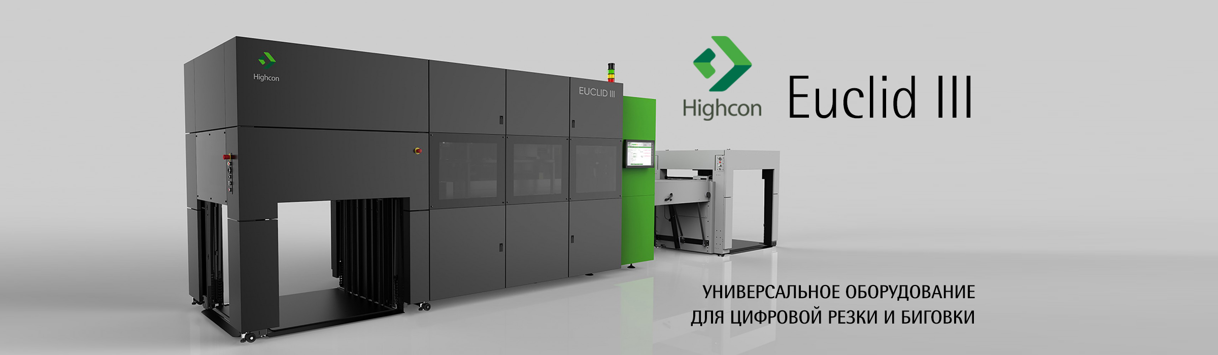 - Highcon Euclid III - универсальная цифровая резка и сгиб, отвечающая современным потребностям производства;