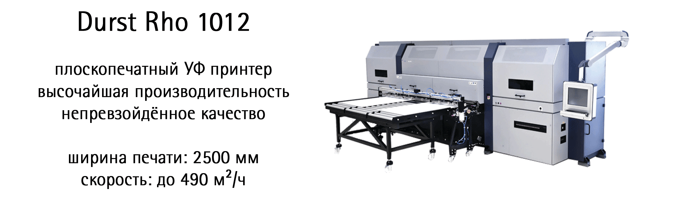 Этот принтер входит во флагманскую серию струйных рулонных и плоскопечатных УФ-принтеров Rho 1000 компании Durst. Отличительные черты печатных машин тысячной серии - это уникальное сочетание превосходного качества и скорости печати, а также универсальности и производительности, недоступных для аналогичного оборудования на рынке.
