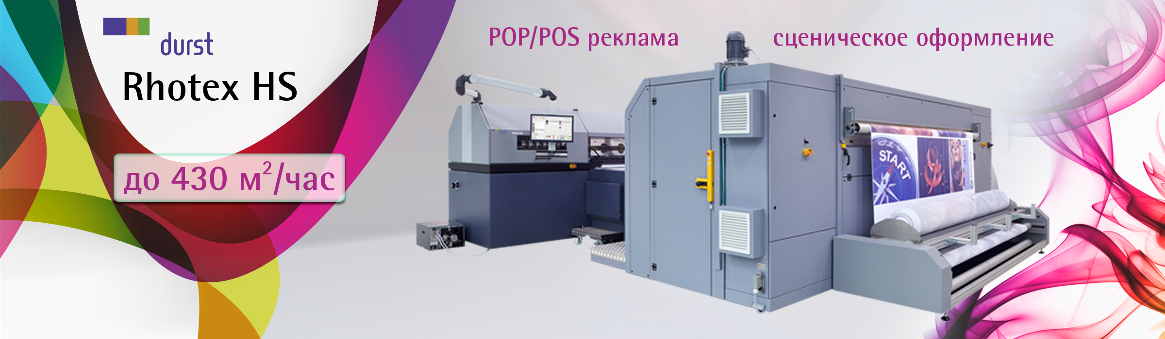 Использование ткани в качестве рекламного или информационного носителя на данный момент является одним из активно развивающихся направлений в печатной индустрии. Новое решение от Durst для растущих требований рынка - это промышленный принтер Rhotex HS, который сочетает в себе преимущества цифровой печати с эффективностью традиционного способа печати на ткани.