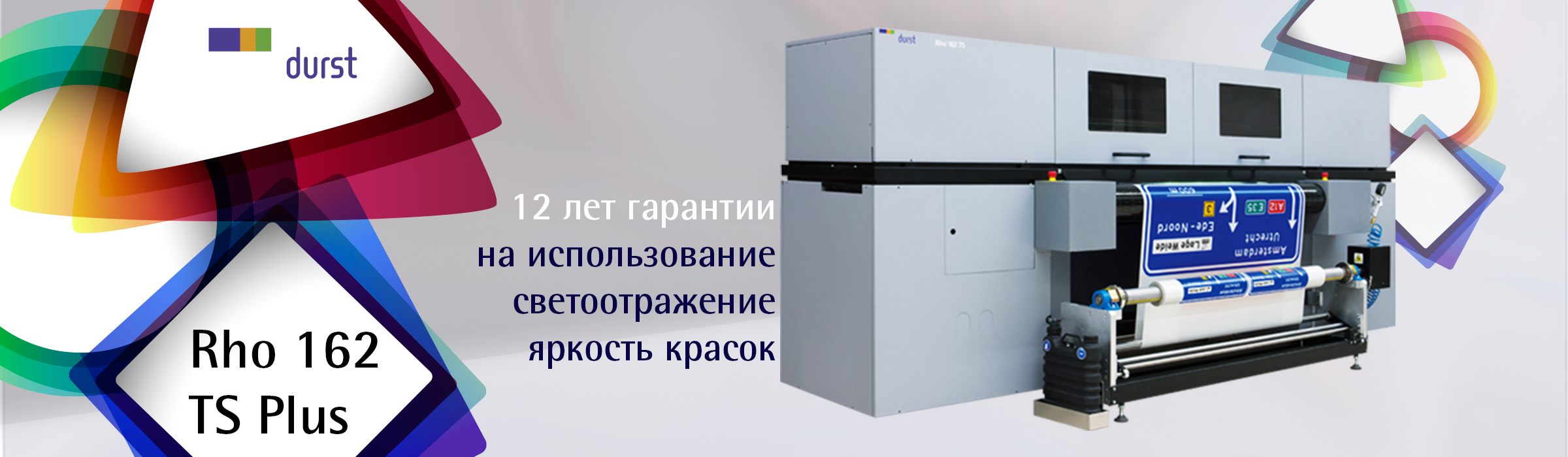 Принтер Rho 162 TS - специально разработанный рулонный УФ-принтер для печати дорожных знаков использует сертифицированные УФ-чернила компании 3M. В комбинации с световозвращающей пленкой и ламинатами производства 3M производитель дает 12 лет гарантии по системе MCS. Дорожные знаки, произведенные по этой технологии, отвечают всем российским и мировым стандартам в отрасли дорожного регулирования, а высокая скорость и гибкость цифровой печати позволяет сократить издержки на их производство.