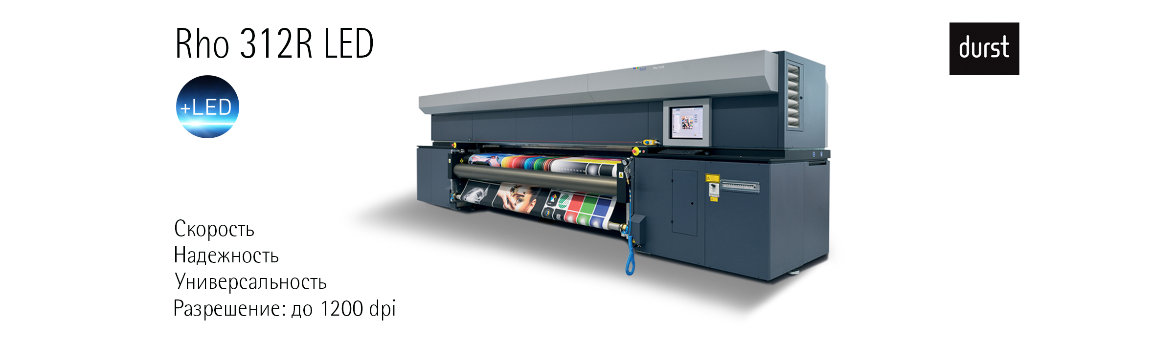 Принтер Durst Rho 312 LED - обновлённая версия Durst Rho 312 LED, одного из самых высокопроизводительных рулонных принтеров компании. Новый принтер Rho 512R LED значительно отличается от своего предшественника по таким ключевым парамметрам, как производительность, разрешение печати, надежность и простота в обслуживании. Например, разрешение максимально возможное разрешение печати возросло до 1200 dpi, а максимальная производительность теперь составляет 305 м²/час. Более того, Rho 312 LED печатает разработанными совместно с компанией 3М чернилами Durst Roll LED, сертифицированными в соответствии со стандартом GREENGUARD GOLD. Этот промышленный принтер отлично подходит для компаний, которые используют как цифровую, так и офсетную технологию широкоформатной печати и стремятся расширить спектр выпускаемой продукции.